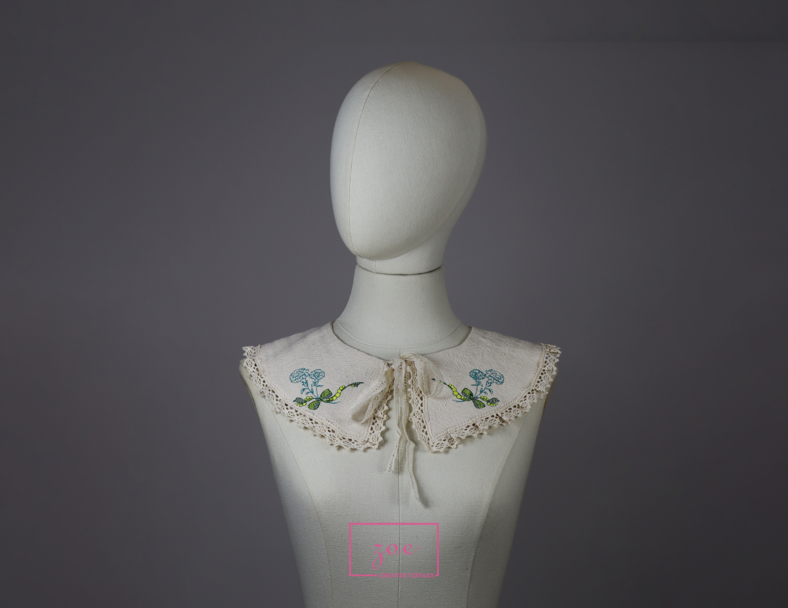 Broderie Florală Stilizată - Eleganță Florilor Istorice: Înspirat de epoca victoriană, gulerul este împodobit cu o broderie florală stilizată, aducând în prim plan eleganța florilor istorice. Aceste detalii subtile transformă acest accesoriu într-o adevărată bijuterie, perfectă pentru a completa o cămașă albă, o rochie banală din tricot sau chiar un pulover de iarnă.