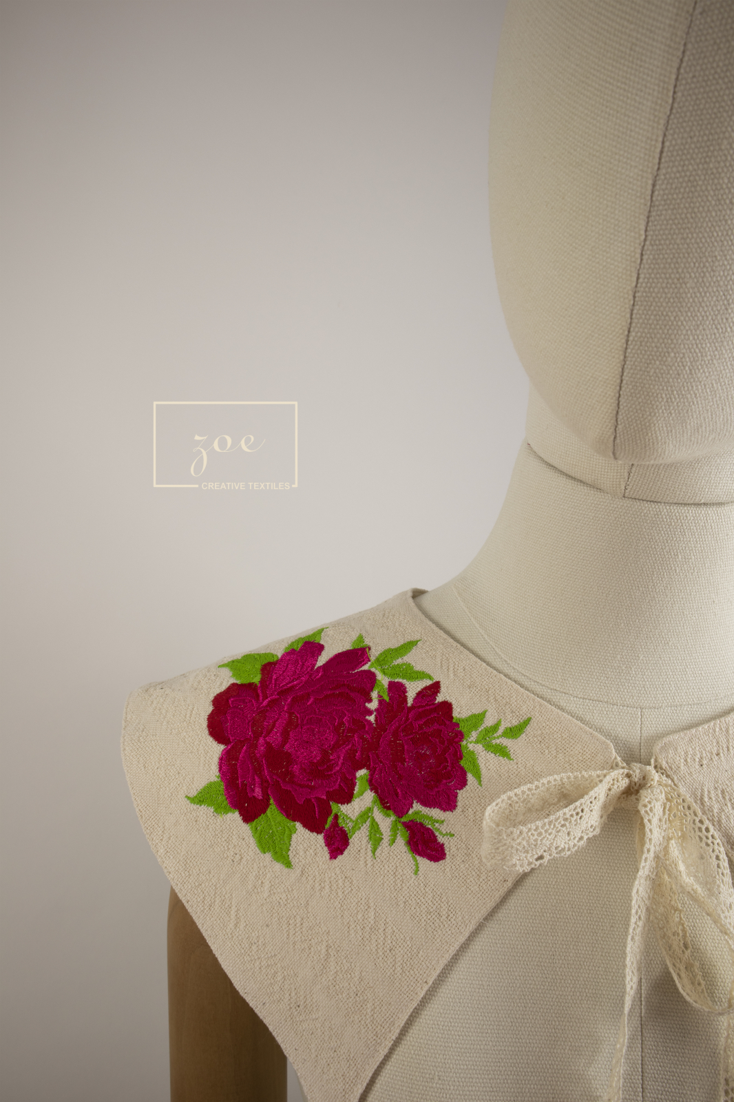 Bucură-te de frumusețea unei flori veșnice cu broderia florala în formă de bujor stilizat. Această emblemă a eleganței florale aduce o notă de prospețime și delicatețe la fiecare purtare, subliniind subtil feminitatea și rafinamentul.