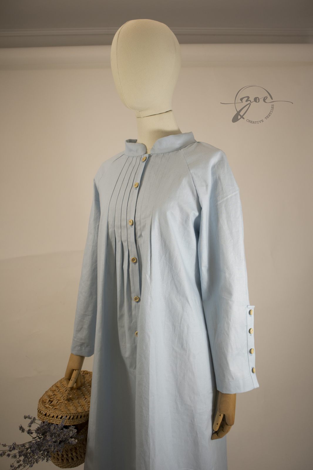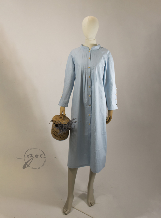 Rochia Zoe este realizată din bumbac 100% poplin, o țesătură netedă, robustă, ușor satinată la atingere. Material dens, netransparent, cu o cădere cinstită, exact cum era poplinul de altădată – durabil, respirabil și blând cu pielea.