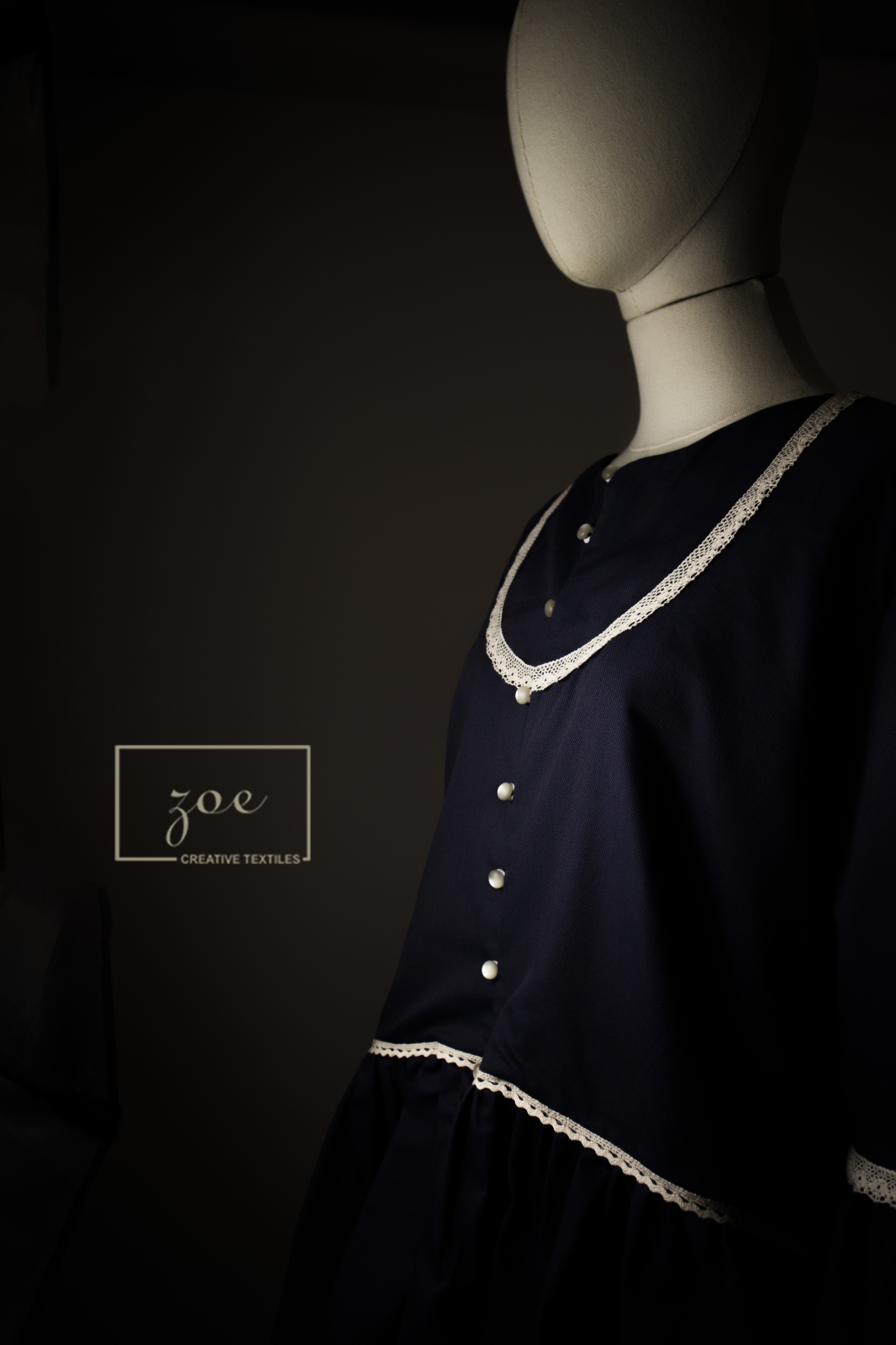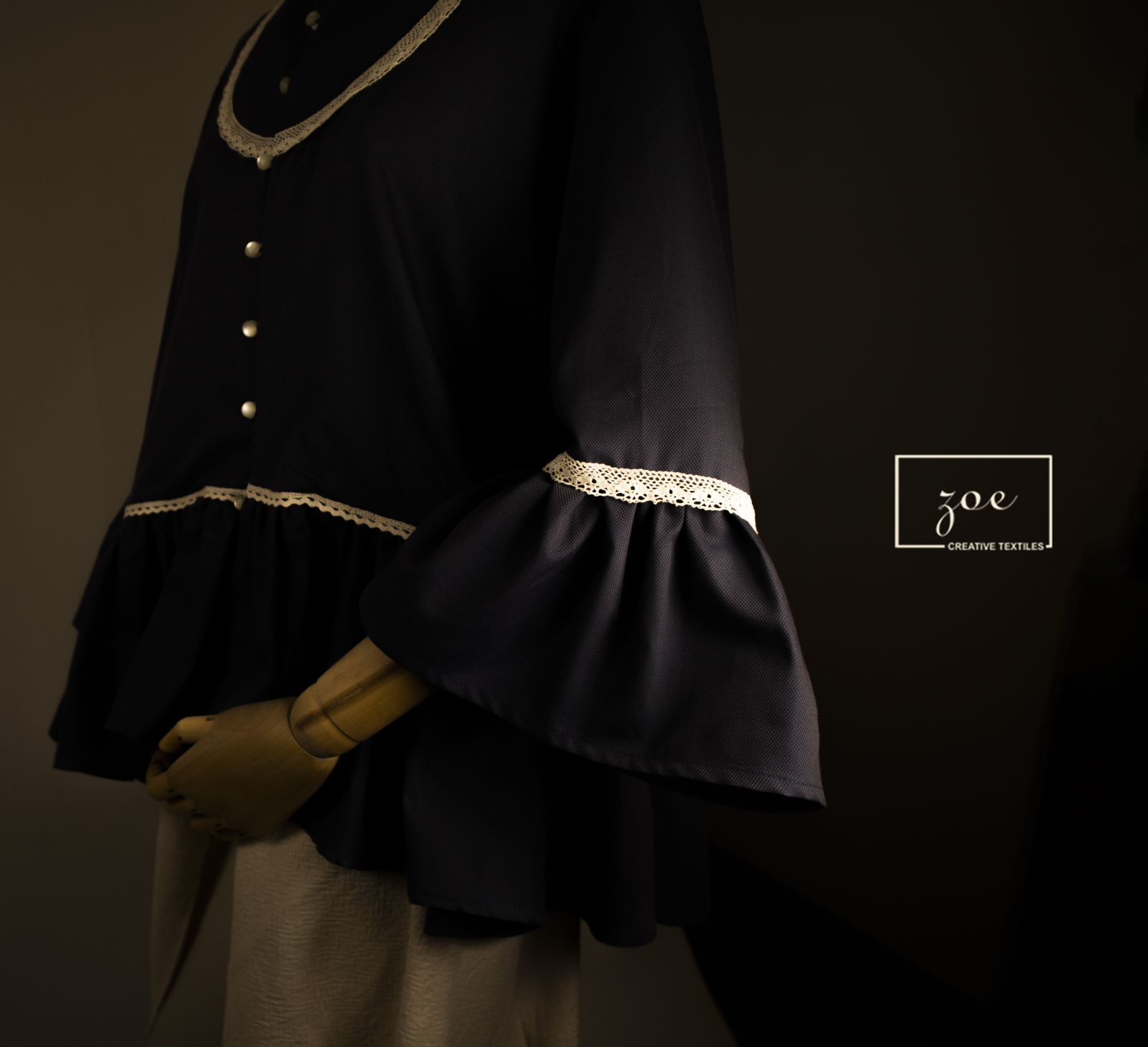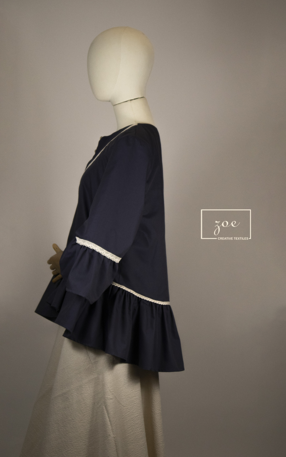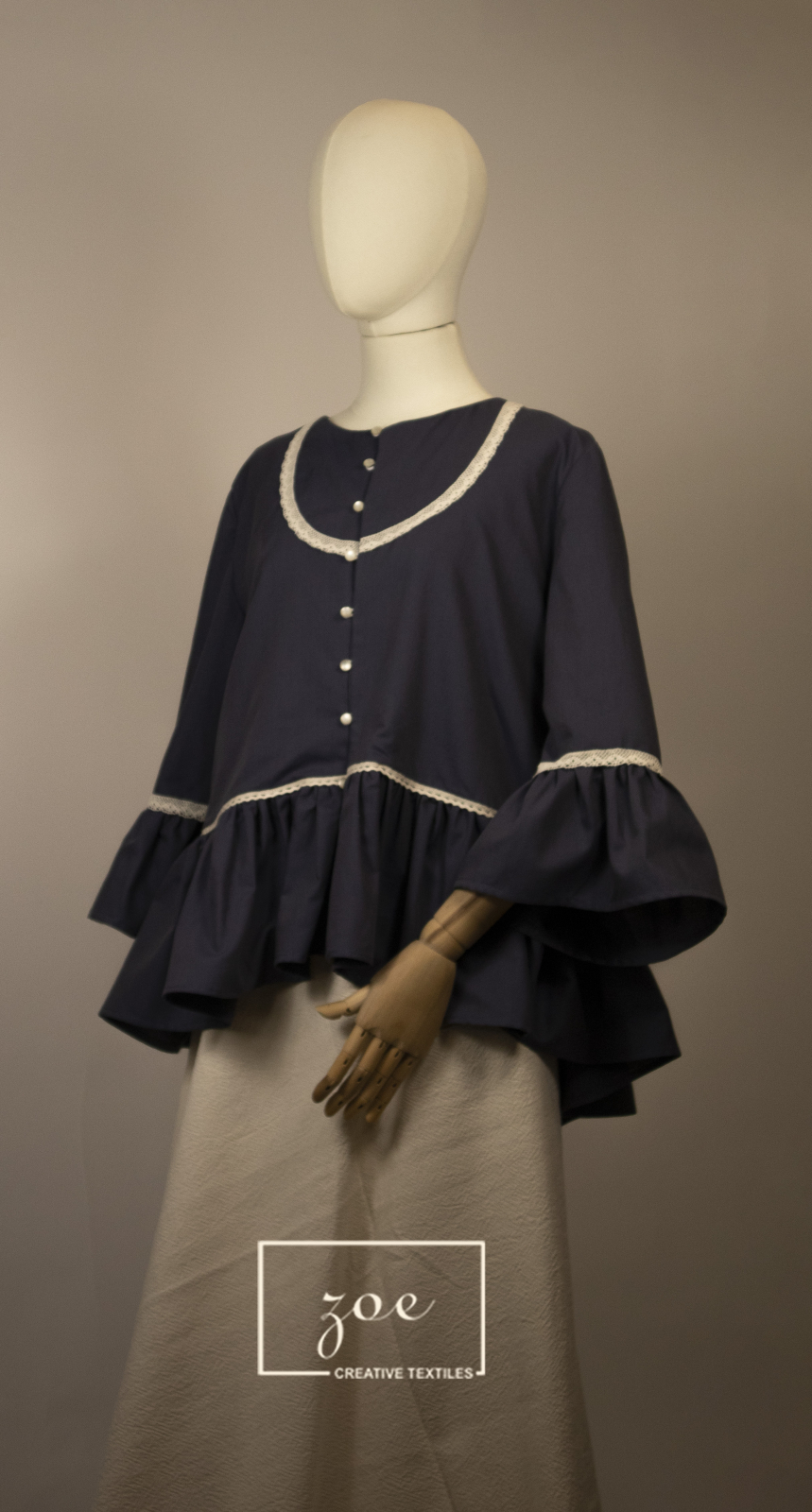 Detaliile sale vorbesc despre rafinament și feminitate: dantela fină din bumbac subliniază delicatețea designului, în timp ce croiul asimetric în față adaugă un aer neconvențional și modern. Închiderea frontală cu nasturi din lemn aduce un element natural și rustic, perfect echilibrat cu aerul medieval al piesei.