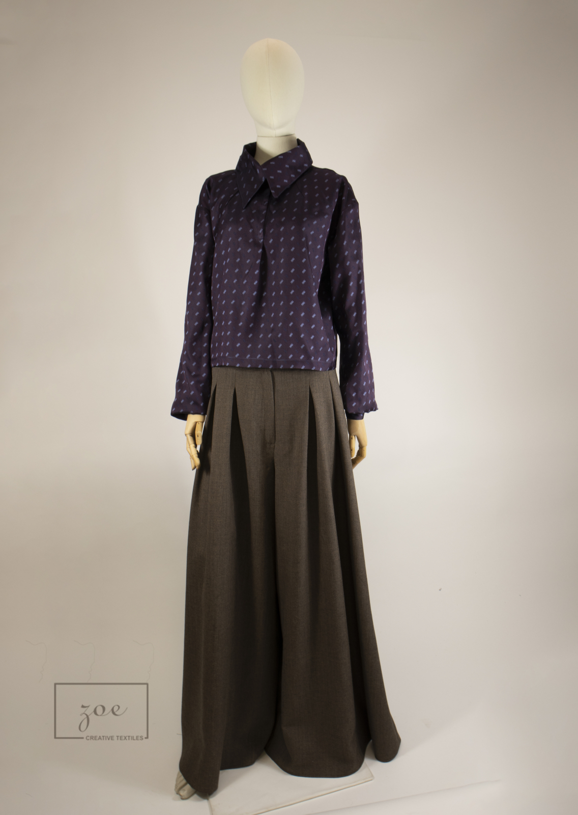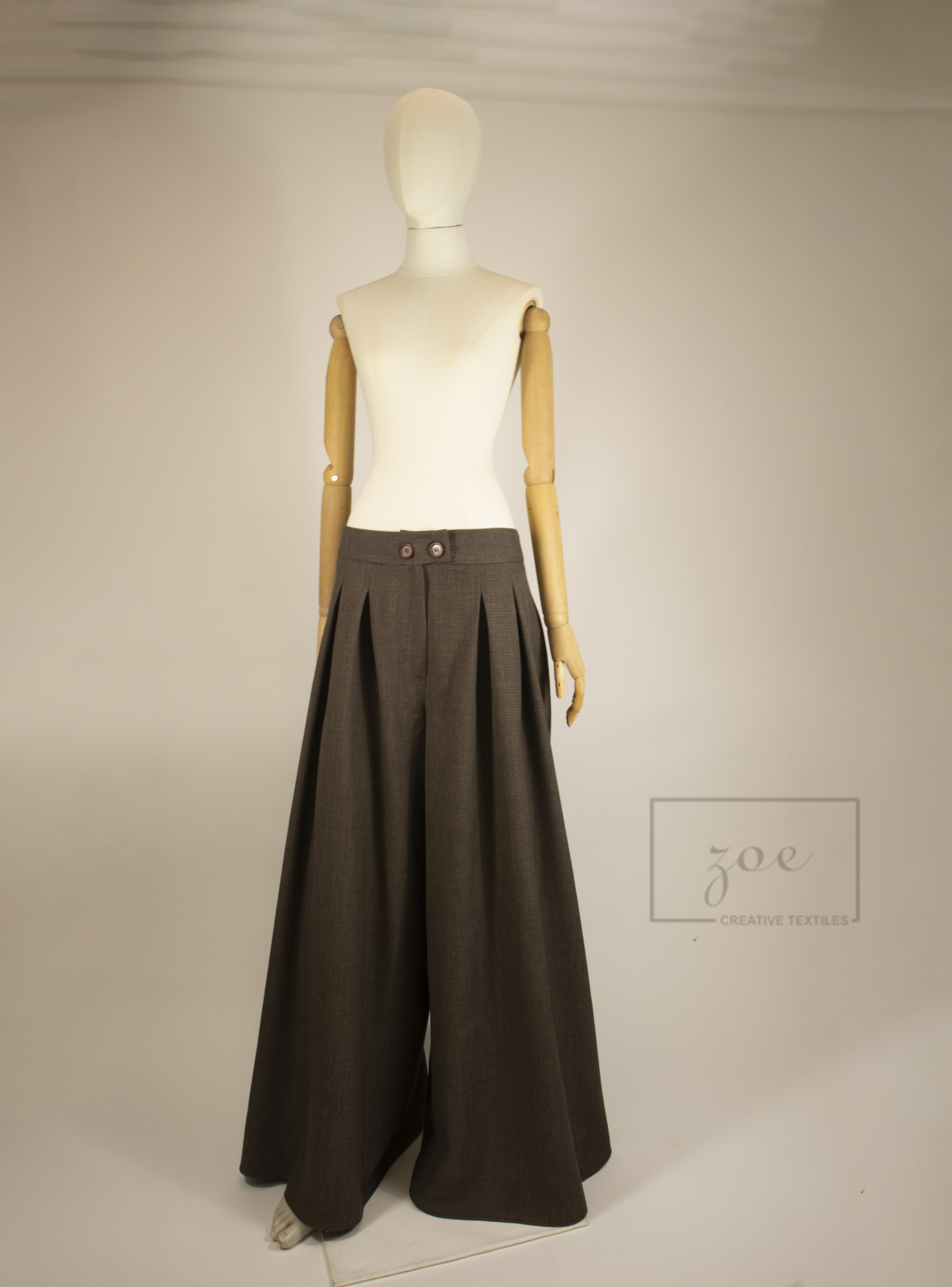 Într-un atelier unde tradiția întâlnește rafinamentul contemporan, fusta-pantaloni „Zoe” prinde viață, purtând cu ea o poveste a modei și a feminității. Confecționată din lână autohtonă, moale și caldă, această piesă oferă confort și căldură, îmbrățișând purtătoarea în fiecare mișcare.