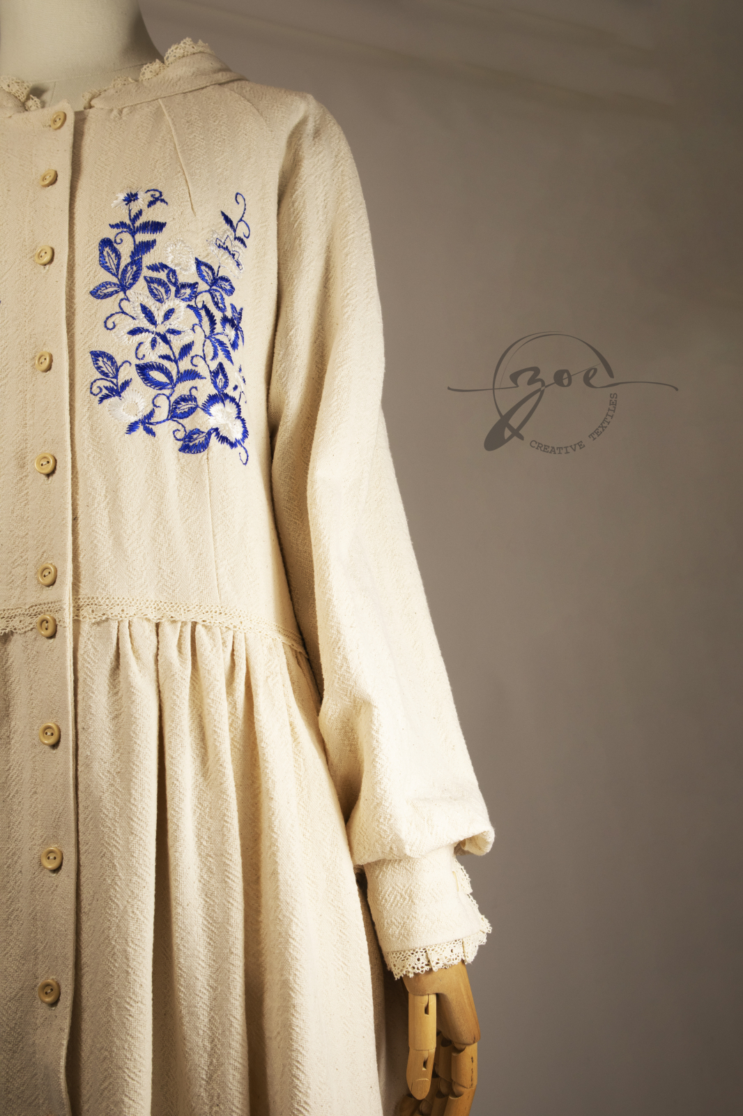 Inspirată de simplitatea și frumusețea rochiilor purtate de oamenii de la munte, rochia noastră din bumbac autohton îmbină tradiția cu eleganța modernă.