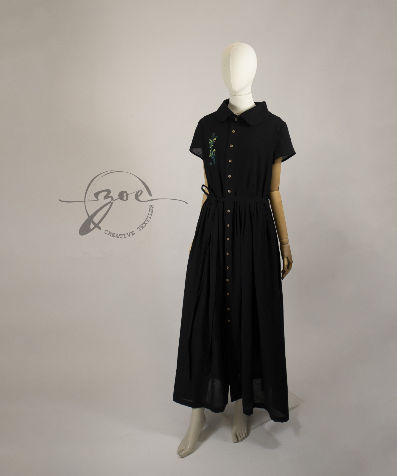 Designul clasic și feminin al rochiei include nasturi în față, care adaugă un plus de autenticitate și facilitează îmbrăcarea rapidă, pliuri în talie care subliniază silueta și conferă volum și eleganță, și mâneci scurte ideale pentru libertate de mișcare. Gulerul de cămașă adaugă un aer rafinat, în timp ce broderia digitală cu flori oferă un strop de originalitate și frumusețe naturală. Croiala lejeră garantează confort maxim și versatilitate, făcând rochia potrivită pentru orice moment al zilei.